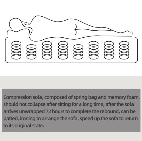 - 【Compression sofa】 No need to install, eliminate the cumbersome process of installation, the sofa contains memory foam and spring bag, the spring bag plays a role in supporting and sitting for a long time. The memory foam sofa is compressed in the express package, and after the package is unpacked, the sofa will rebound within 72 hours, and the rebound speed can be accelerated by patting and finishing.